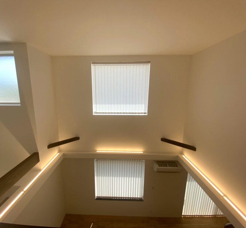 開閉の手間もかからず、高所から差し込む柔らかな採光を楽しんでいただける空間に仕上がりました。