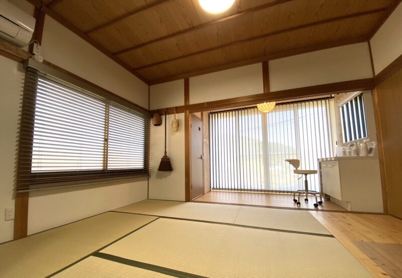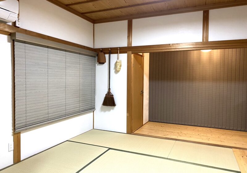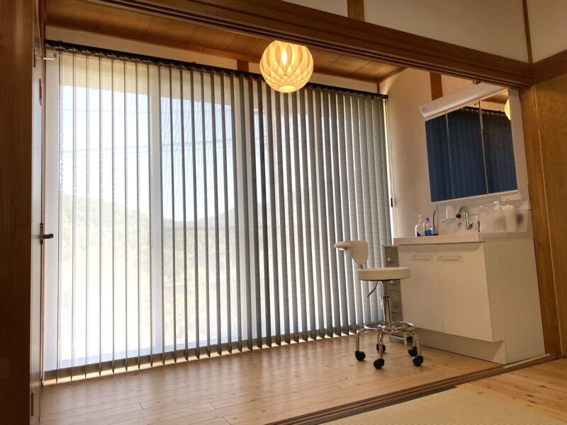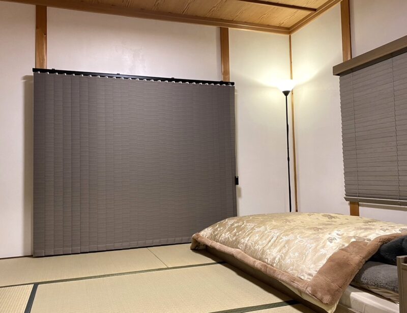 寝室となる和室と広縁にバーチカルブラインドの『バックレーススタイル』を施工。