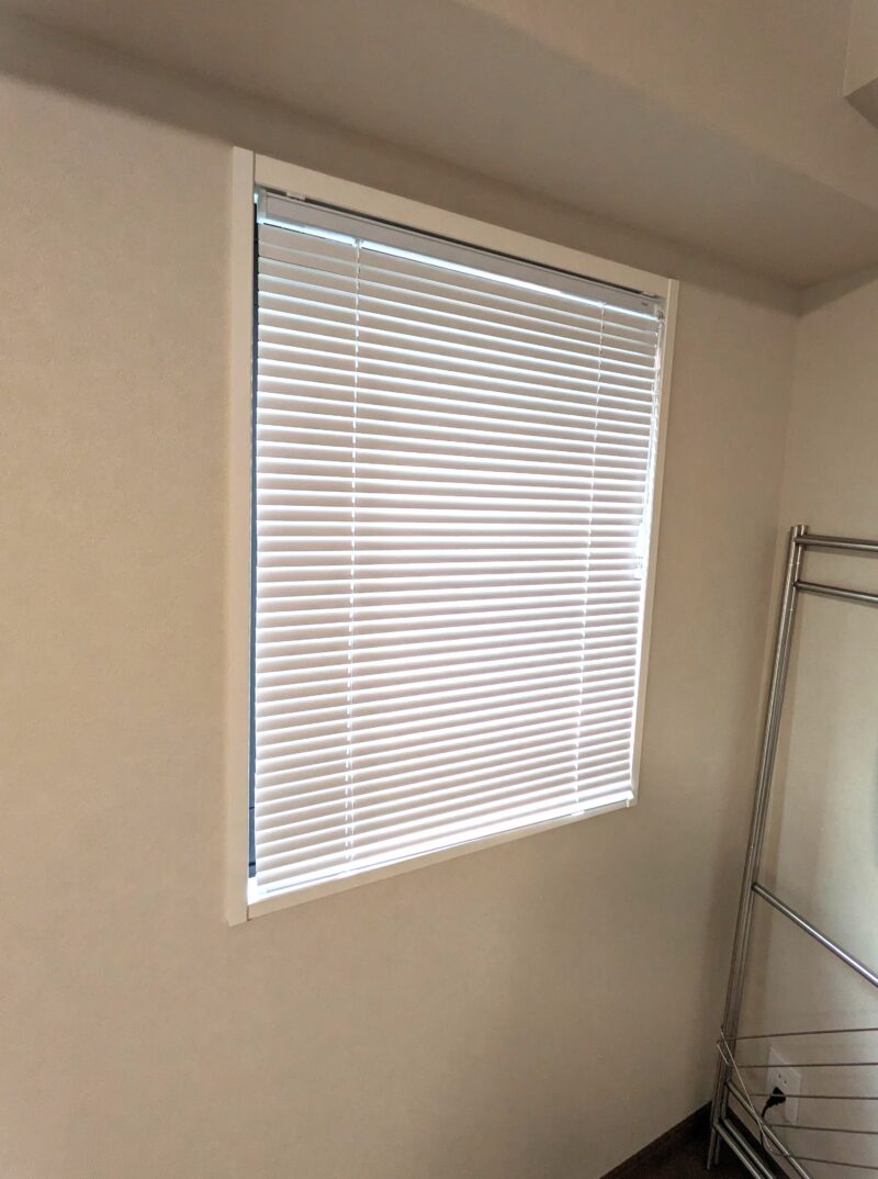 マンションのすぐ傍に高い建物があり外からの視線も気になる場所でしたが、ブラインドの羽根の角度調整でプライバシーを守って快適に過ごしていただけます。