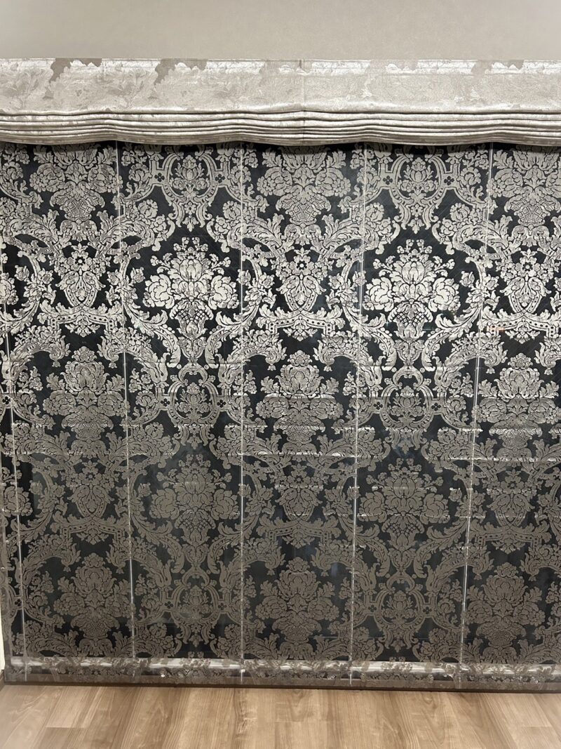 日中楽しんでいただけるレース生地は、大胆なダマスク柄をオパールプリントで表現したとてもドラマチックなデザイン。