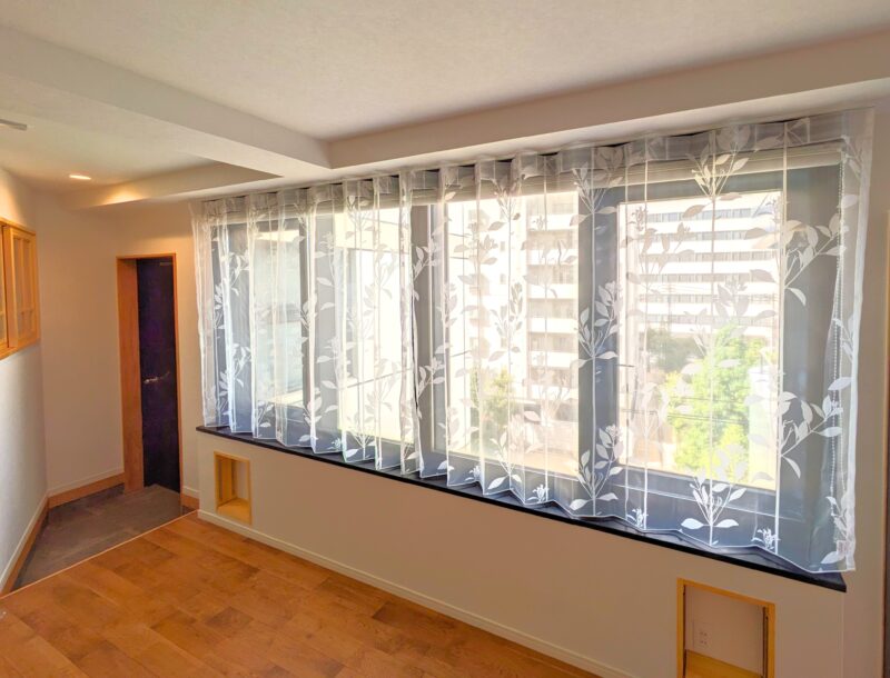 あえてフラットスタイルにすることでボリュームを抑え、圧迫感を感じない、おしゃれですっきりとした窓まわりになりました。