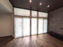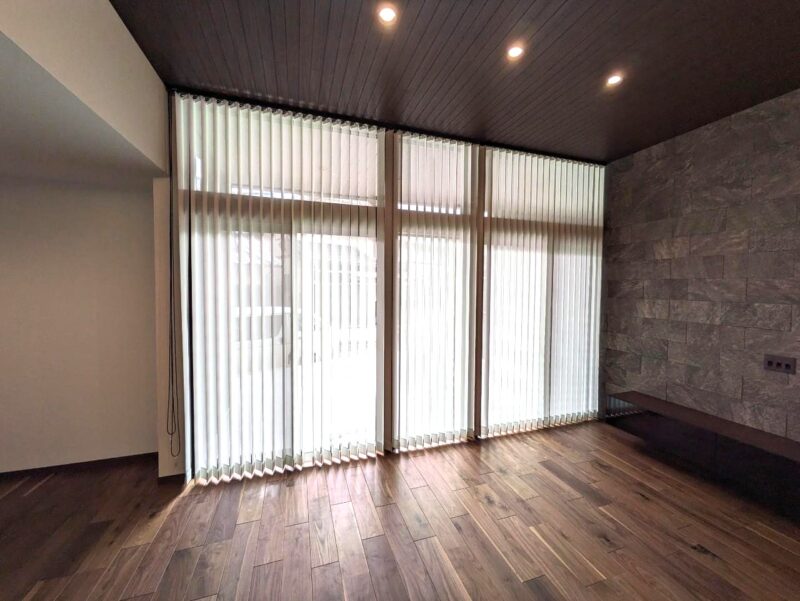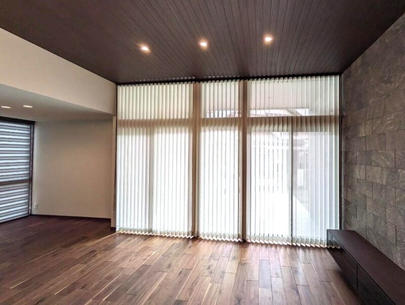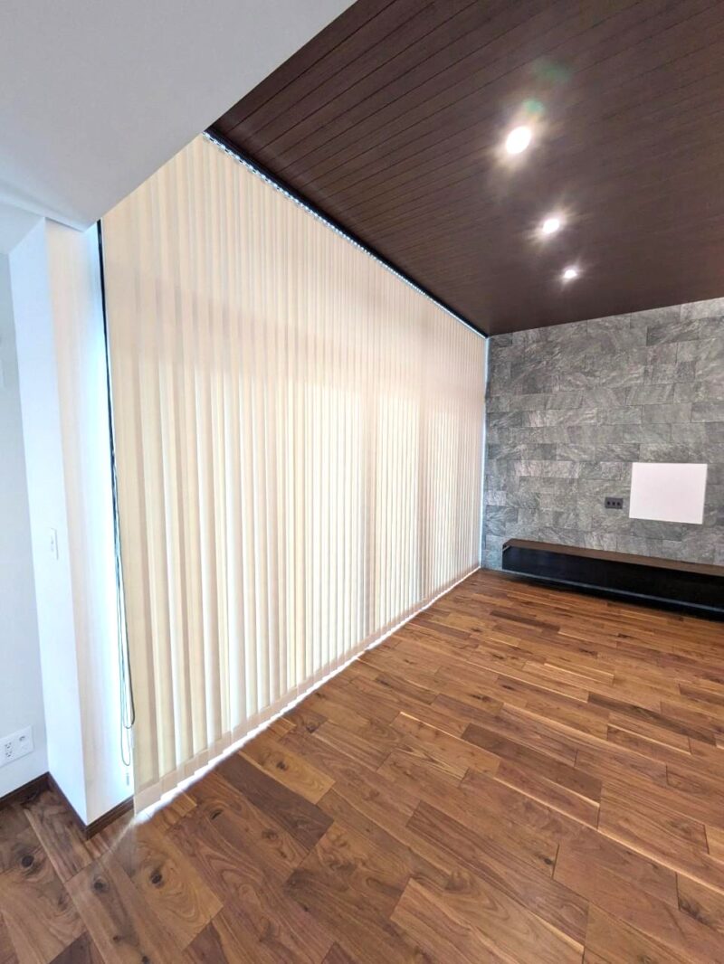 バーチカルブラインドの最大の魅力と言える、縦長効果を最大限生かすために天井からの取付をご提案。