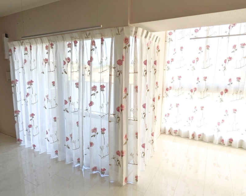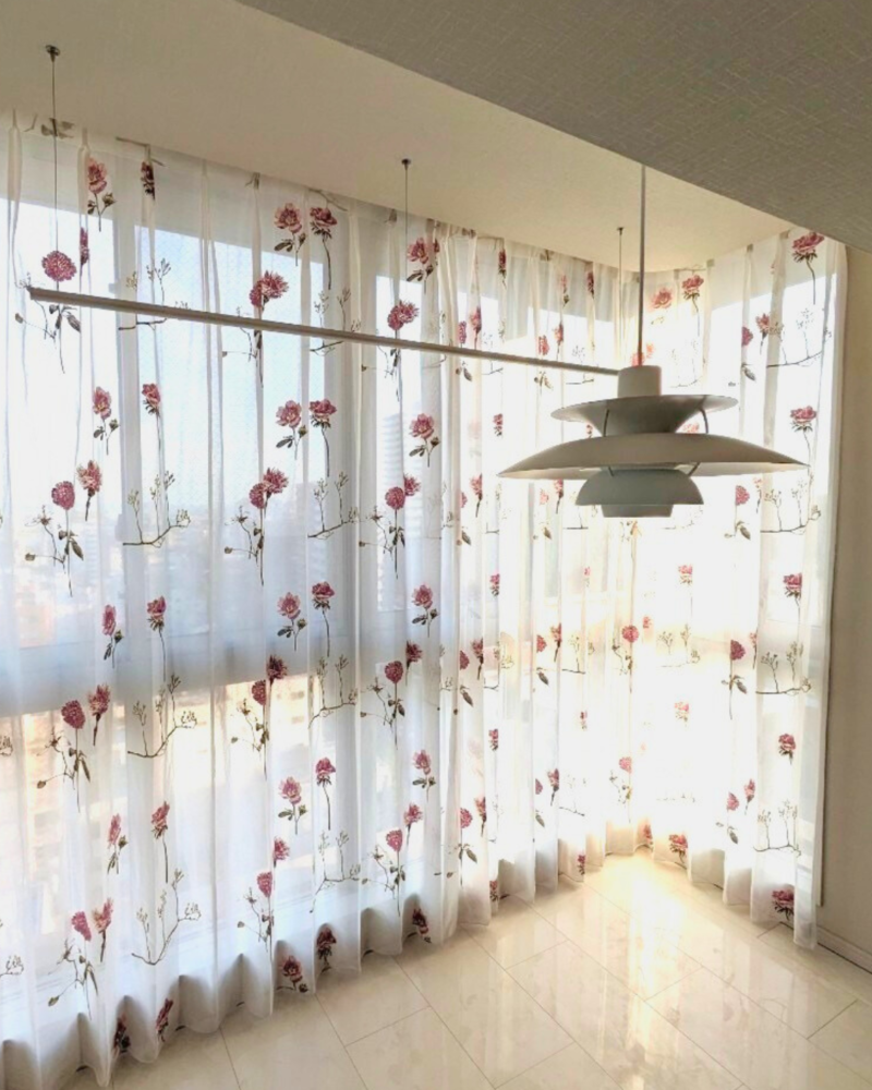 マンションの大きな窓も、レースカーテンなら軽やかに仕上がります。