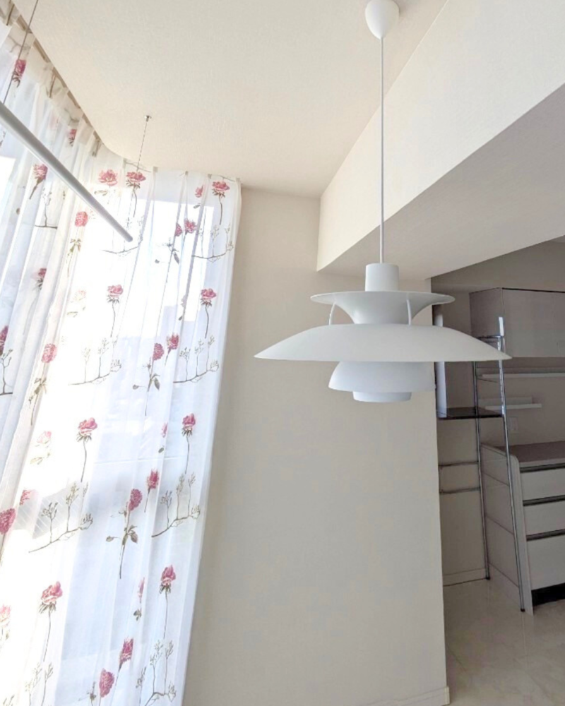 この空間にさらに、計算されつくしたシンプルかつ流麗なデザインのペンダントライトをご提案させて頂きました。