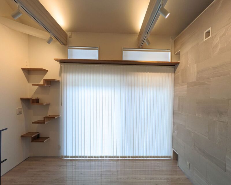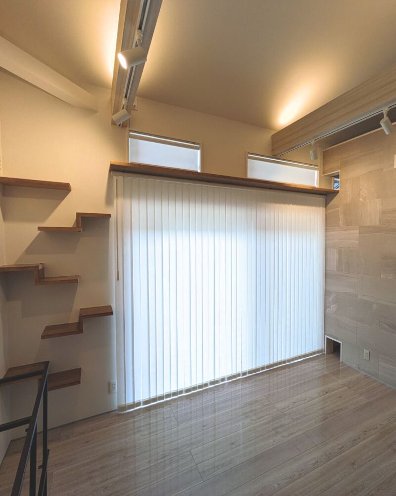 バーチカルブラインドの縦長効果も相まってお部屋を広く見せています。