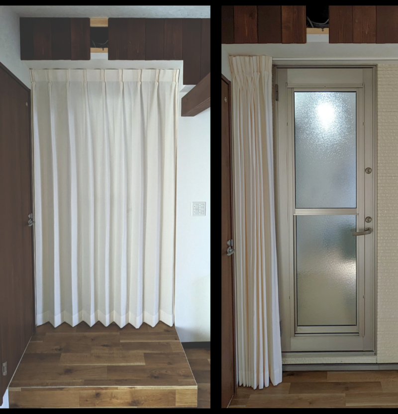 ご自宅へ続く扉の前にもカーテンを取付けました。