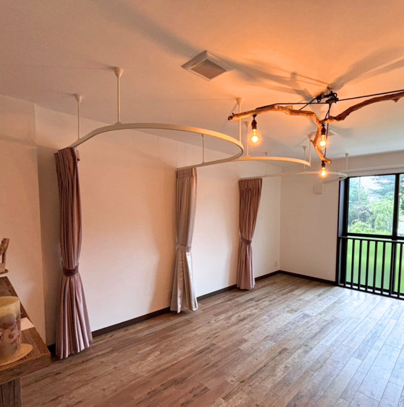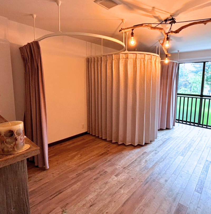カーテンの向こう側はよもぎ蒸しを受けられるスペースとなっています。