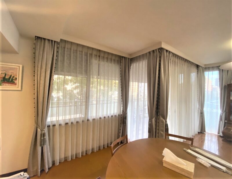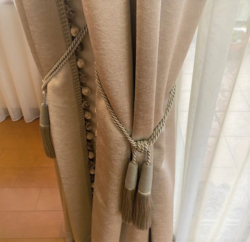 今回はお客様が熟考され、カーテンの両サイドにトリム取り付けたスタイルカーテンを製作しました。