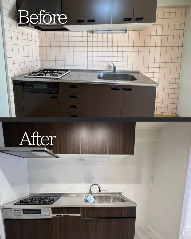 • クロスやフロアの修繕とともに、最新のシステムキッチンへ。