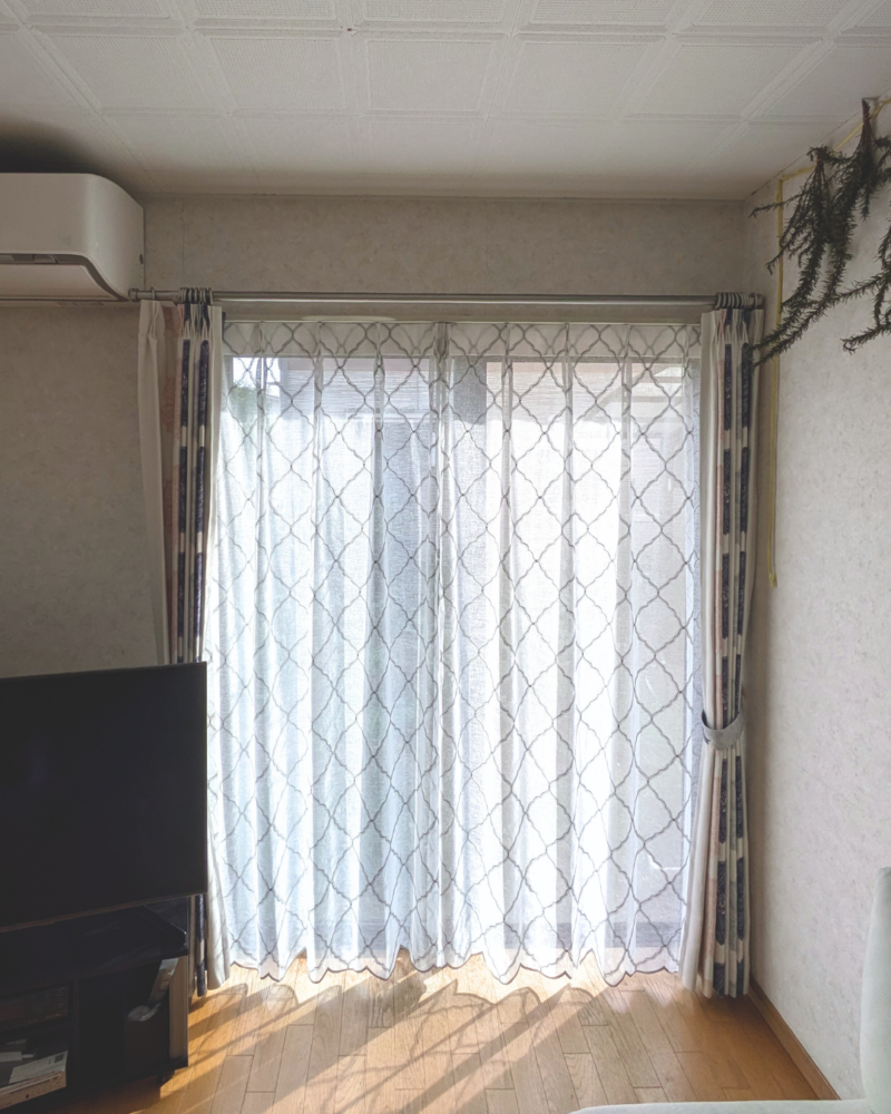 天然素材などのナチュラルな雰囲気がお好みで、ショールームのサンプルから格子柄のレースを選ばれました。