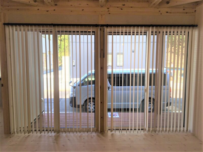 また、窓のすぐそばにドアがあるためドアの開閉に干渉しないよう、通常より細い70mmのスラットを採用しました。