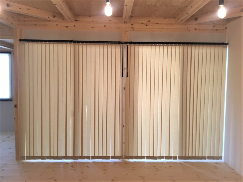 とても大きな窓には、高さがあるとより映えるバーチカルブラインドを取付。