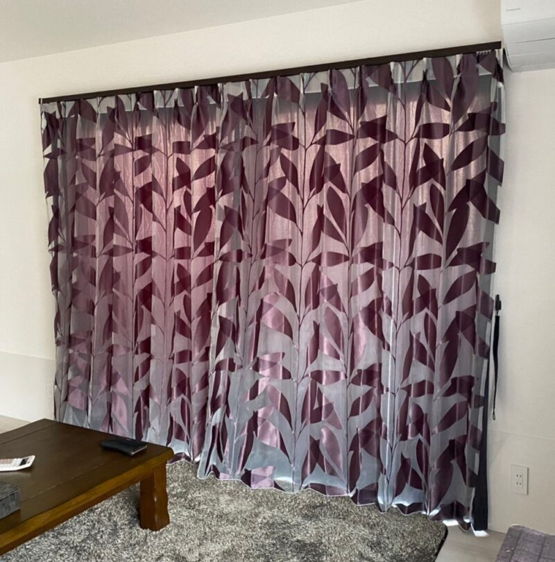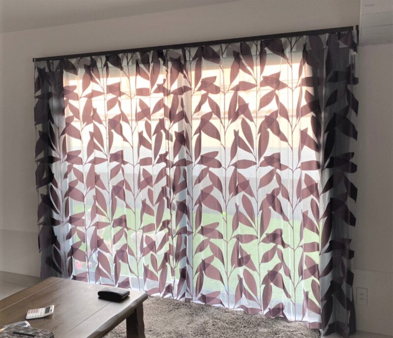 主役となるレースカーテンは、大胆なリーフ柄で存在感を出しました。