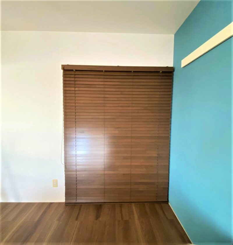 ⁡収納スペースの間仕切りにはロールスクリーンやカーテンを使用することが多いですが、部屋全体をかっこよくまとめたい!見た目が好き! 収納っぽくしたくない!とのお客様のご要望で、今回はウッドブラインドを施工しました。