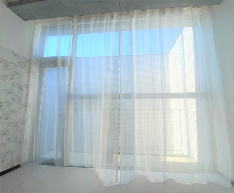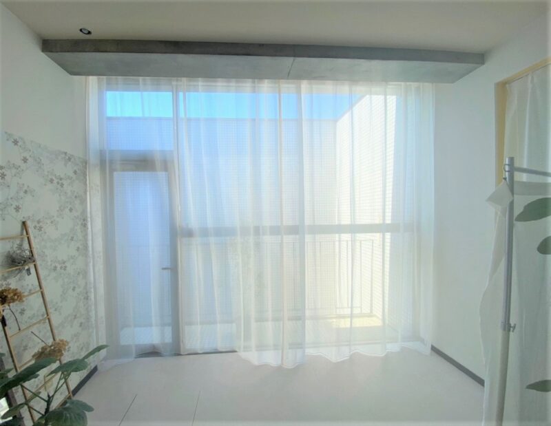 程よい透け感のレースカーテンを吊ることで、眩しさが軽減され適度に光を遮るとともに、明るく開放感のある空間になりました。