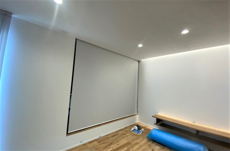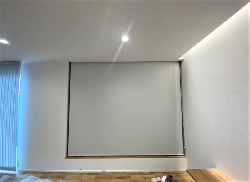 逆巻することで壁の面とスクリーン生地の面が合うので、見た目も美しく仕上がりました。