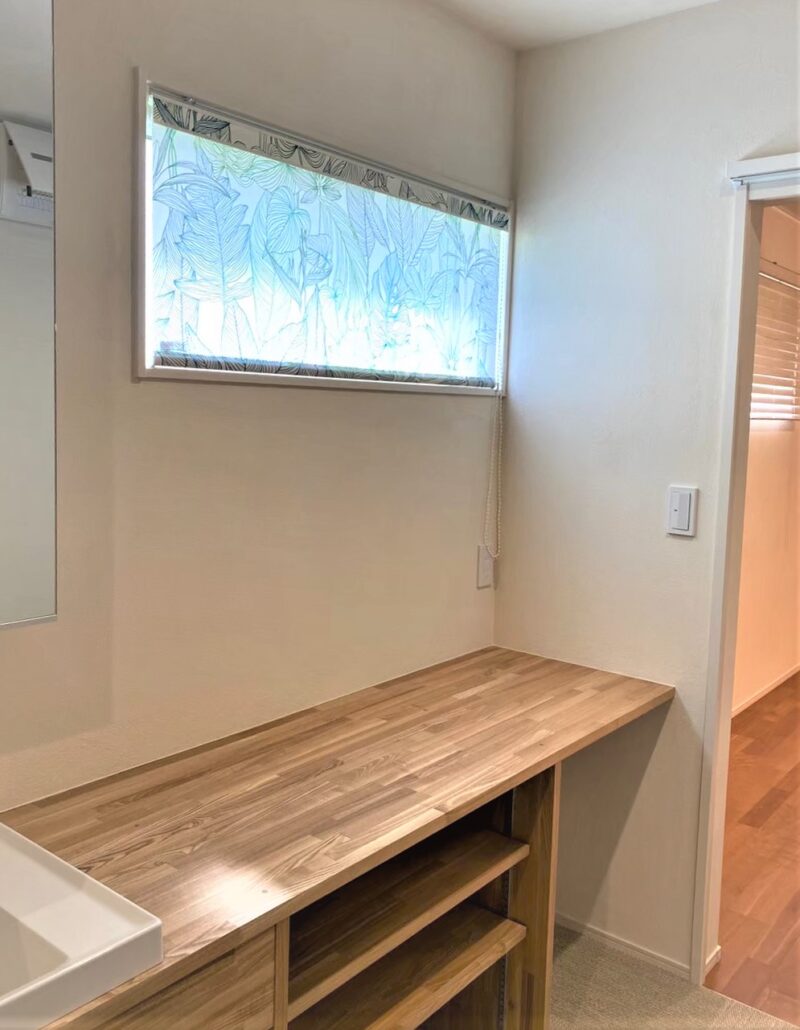 洗面脱衣室の窓装飾。