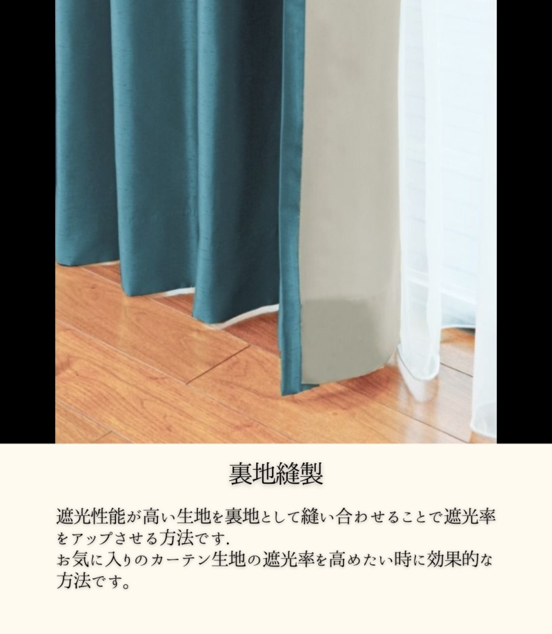 カーテンの遮光性を高める裏地縫製