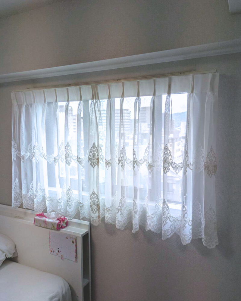 ふんわりと可憐な印象の刺繍カーテンがお好みで、それぞれのお部屋にお気に入りのレースを選ばれました。