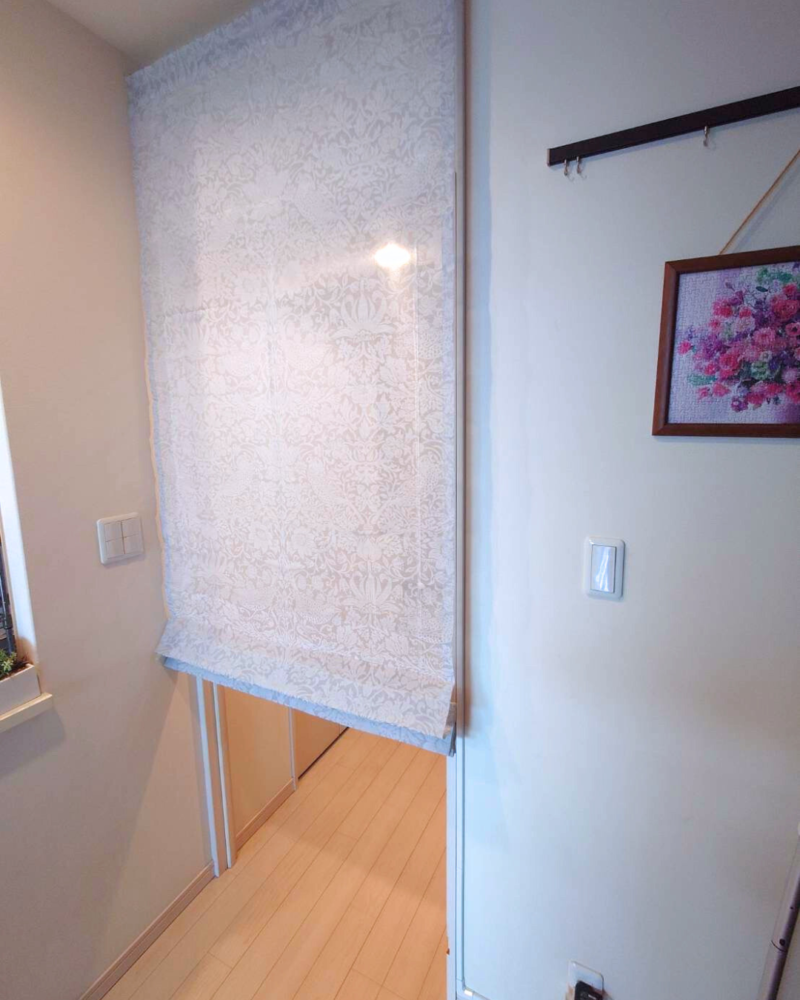 シアー生地のシェードで玄関とリビングをやわらかに仕切りました。