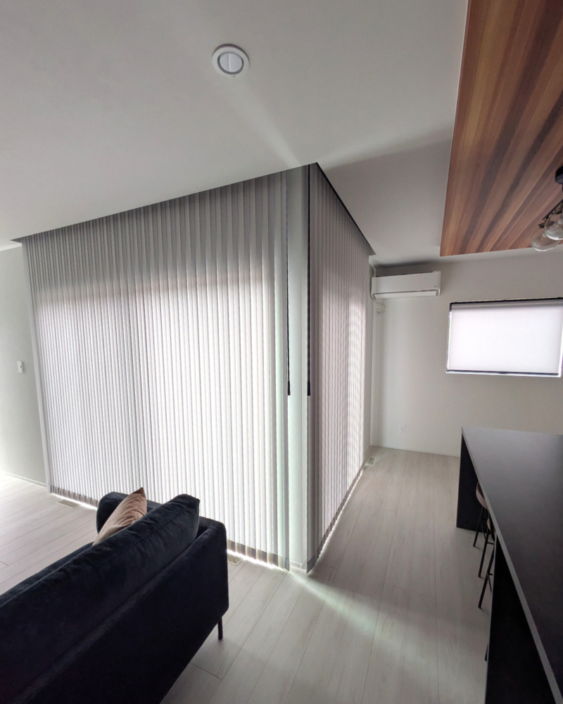 カーテンボックスからの取付で縦のラインが途切れず、空間が広く感じられます。