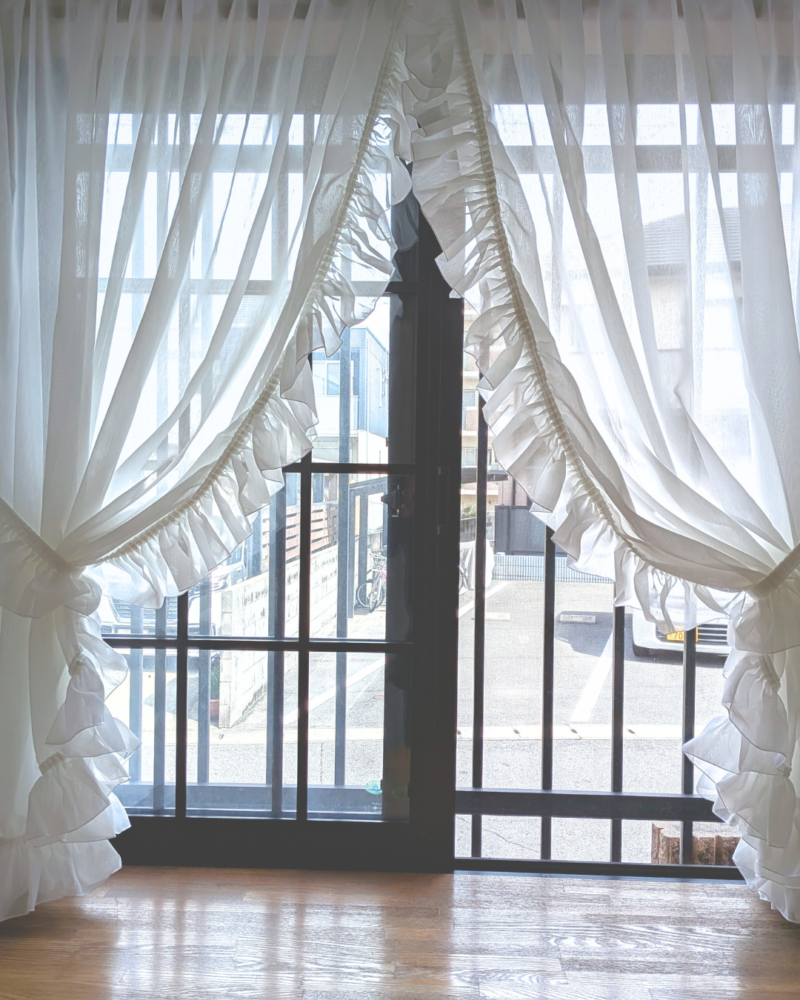このヒダの重なりが布の質感や空気感を引き立て、窓まわりに奥行きと上品さを与えてくれます。