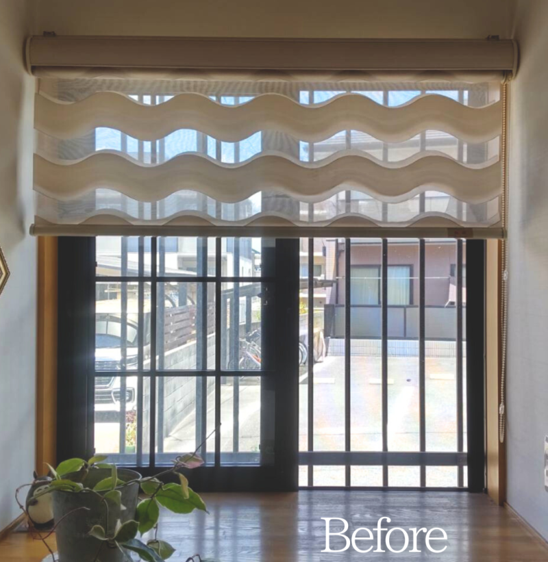 小窓の調光ロールスクリーンを思い切ってスタイルカーテンへ替えられました。