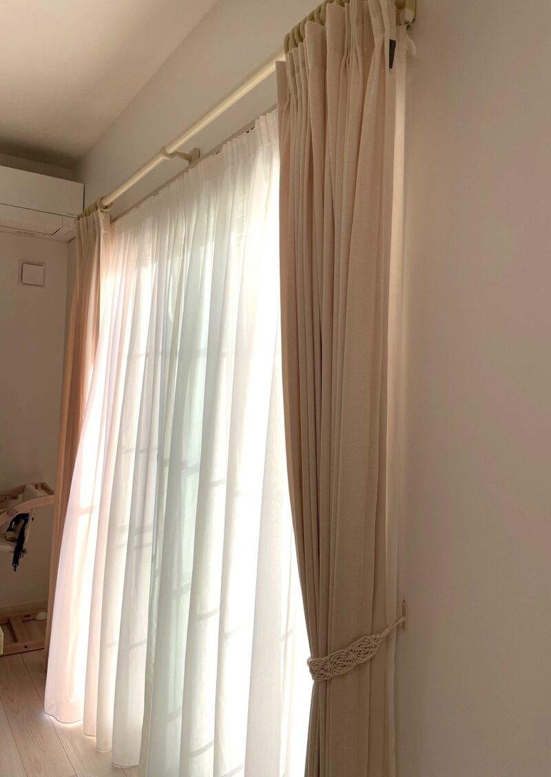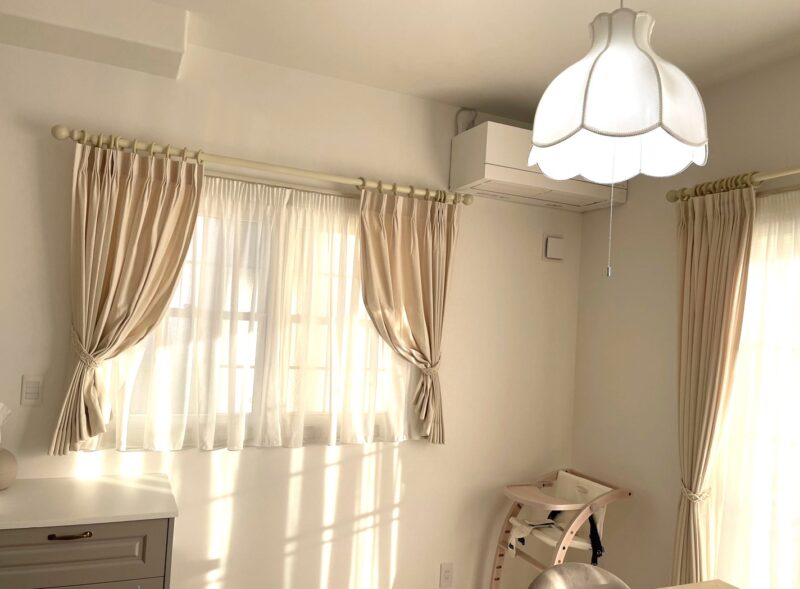 お部屋の雰囲気に合わせたカーテン生地とスタイルをじっくり選ばれました。