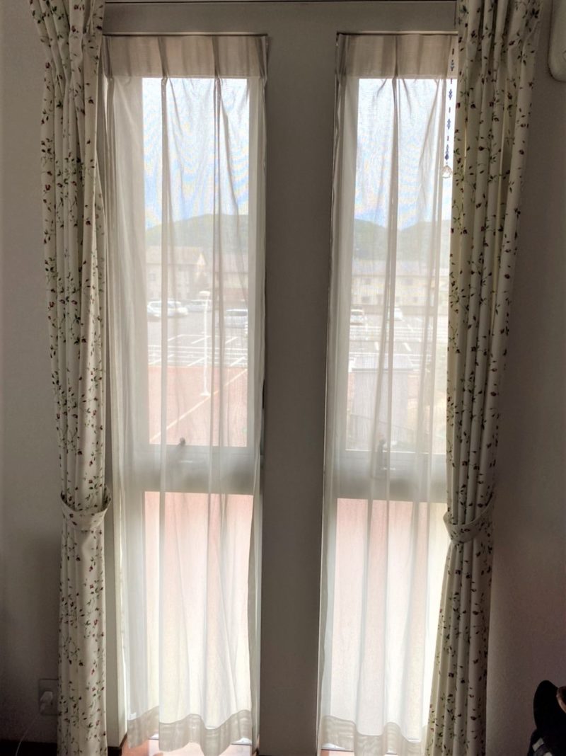 • <吊替前>お嬢様が子供のころから使われていたカーテン。 女の子らしい小花柄で可愛らしい印象でした。
