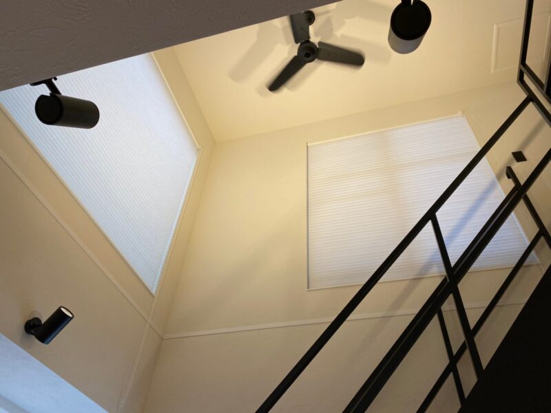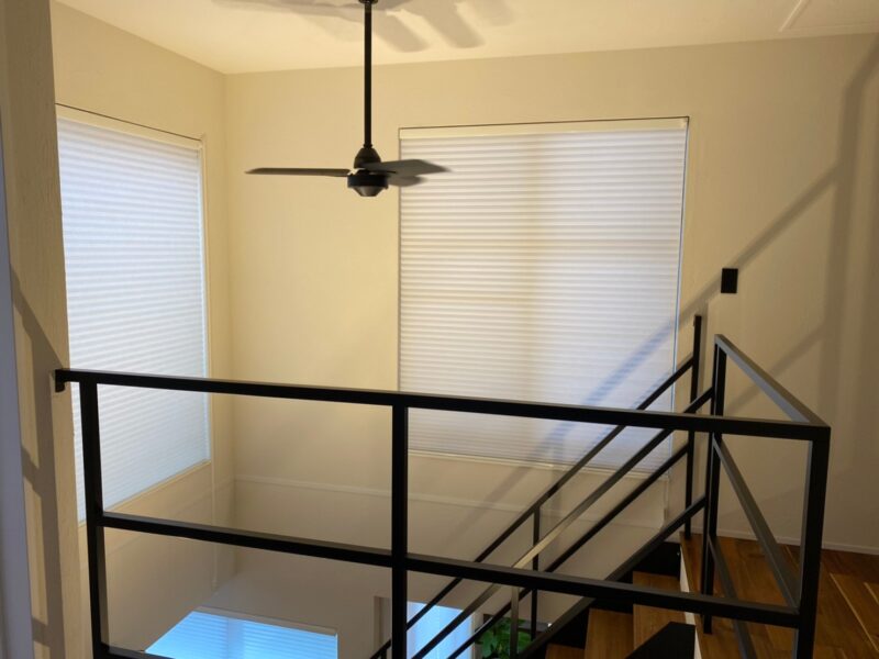 • 吹き抜けから続くLDKもハニカムスクリーンで統一感を
