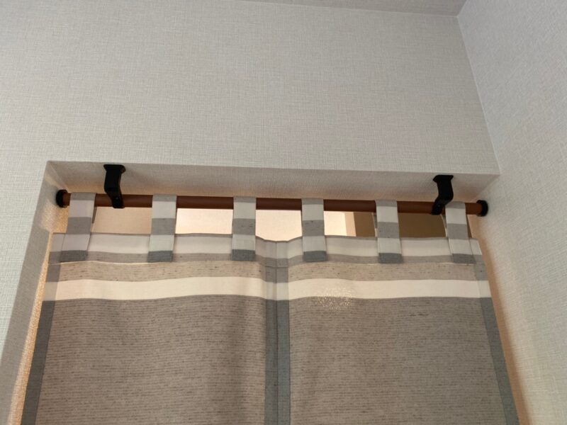 暖簾は装飾レールで吊るしているので、取り外しができ好きな時にお洗濯ができるので、キッチンでも安心してご利用いただけます。