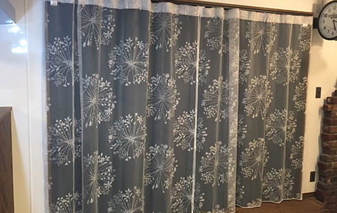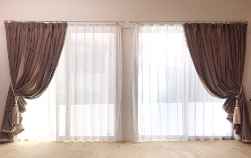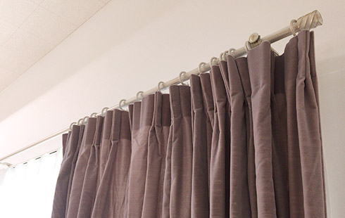 • ドレーブ(厚地)カーテンを後ろに、レースカーテンを手前に持ってきた普通とは逆の取付方法です。