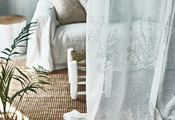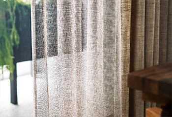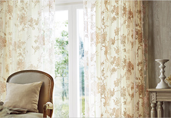 日中、太陽の日差しや紫外線をやわらげたり、外から室内が見えないようになど機能性が高いレースカーテン。