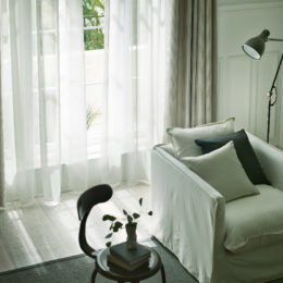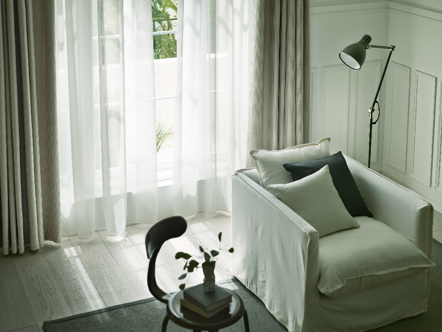 長く使われてきたような雰囲気と色合いを活かしたインテリア。 ヴィンテージ感のあるファブリックや雑貨が、シックで洗練された空間をつくりだします。